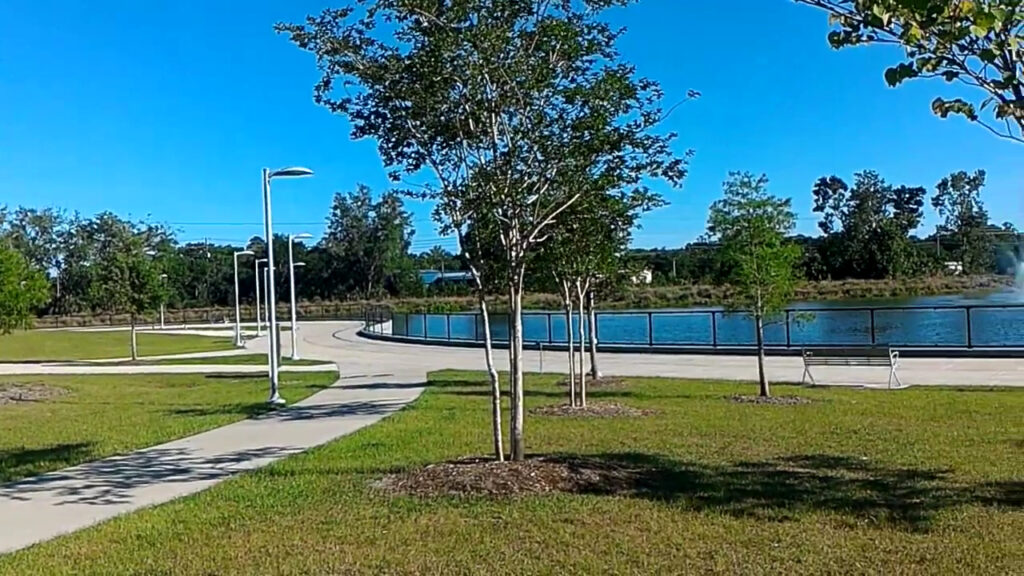Depot Park is also a leader in environmental sustainability. The park functions as a beautiful stormwater treatment system, collecting runoff from Gainesville’s urban core and cleansing it before it flows into Sweetwater Branch Creek and Paynes Prairie. The historic depot building, listed in the National Register of Historic Places and certified by U.S. Green Building Council LEED Gold standards, has been renovated into a small market, outdoor cafe, and event space, further enhancing the park’s appeal. Native tree and shrub species, including red maple, southern live oak, bald cypress, and saw palmetto, create a low-maintenance landscape that supports local wildlife and provides shade and beauty throughout the year.